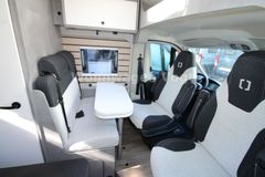 – Base Kit (Dachhaube Midi-Heki 70 x 50 cm über der Sitzgruppe, Drehplatte für Tischerweiterung, Duschausstattung (Brausekopf ausziehbar, Duschvorhang, Führungsschiene, Brausehalter), Elektrische Einstiegsstufe, Falt-Sichtschutz in Fahrerhaus, Fenster im Bad, Holzrost in der Dusche, Kleiderstange im Bad, Rahmenfenster im Wohnbereich (in Hecktüren Ausstellfenster))