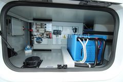 – Elektro-Powerpaket (zusätzliche 210 Ah Gelbatterie (=2 x 210 Ah), mit Rabatt Wechselrichter 12 V/230 V Sinus Wechselspannung, Dauerleistung 3000 VA/2400 W und Fernbedienung, plus 10 zusätzliche Steckdosen (7 x 230 V, 3 x Doppel-USB)