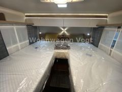 – Premium Interieur-Paket II (Deko-Paket Schlafen "SENARA": 4 Kissen und 2 Decken im Schlafbereich, EvoPore HRC Matratze inkl. WaterGEL-Auflage, nur Festbetten, Füllstandsanzeige für Frischwassertank, Insektenschutztür)