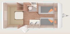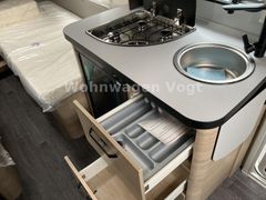 – Smart-Paket (Frischwassertank 45 Liter, Festeinbau, Kombi-Rollos an den Fenstern, inkl. Verdunklungund Insektenschutz, Stabilisator-Sicherheits-Kupplung, Umluftanlage 12 V)